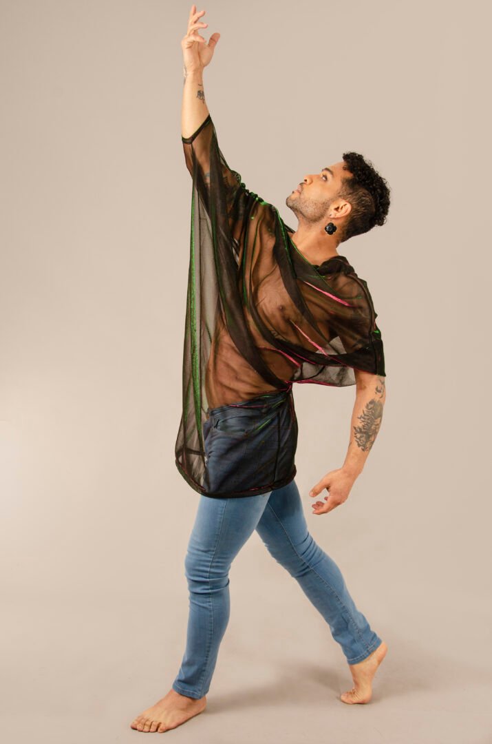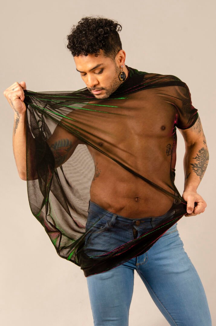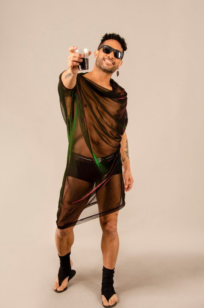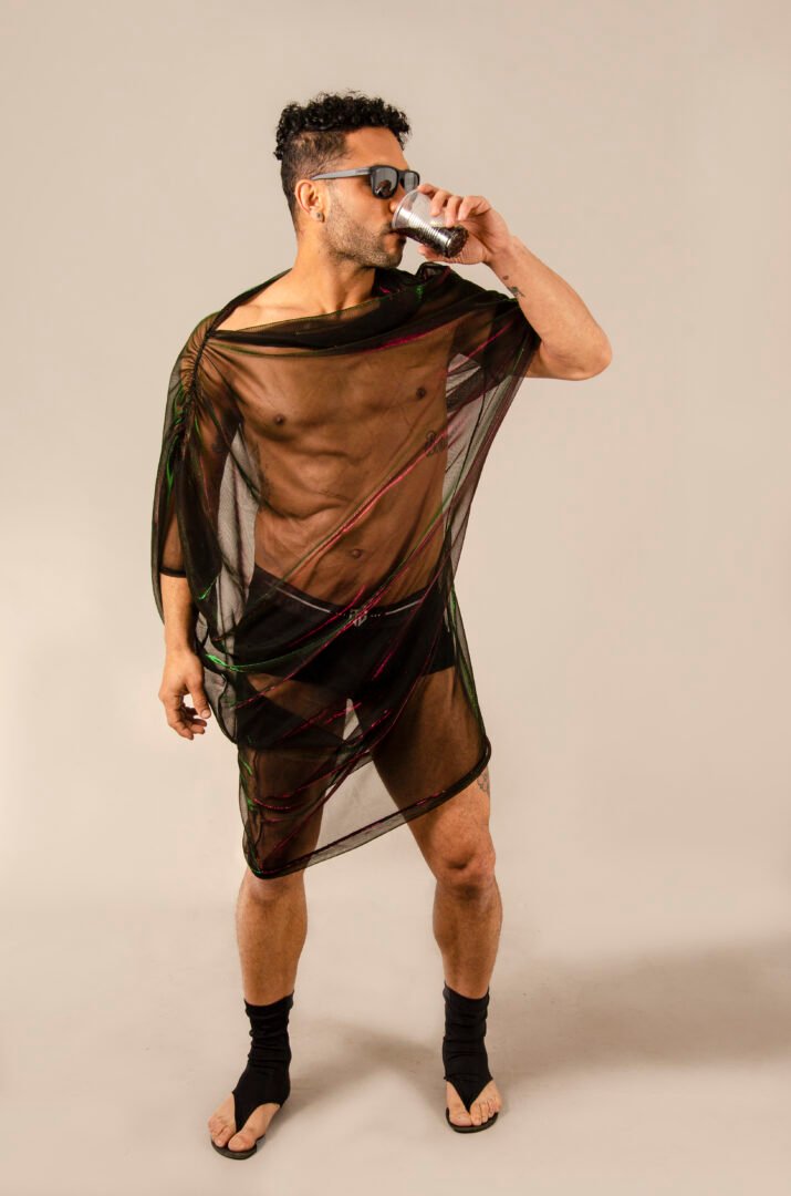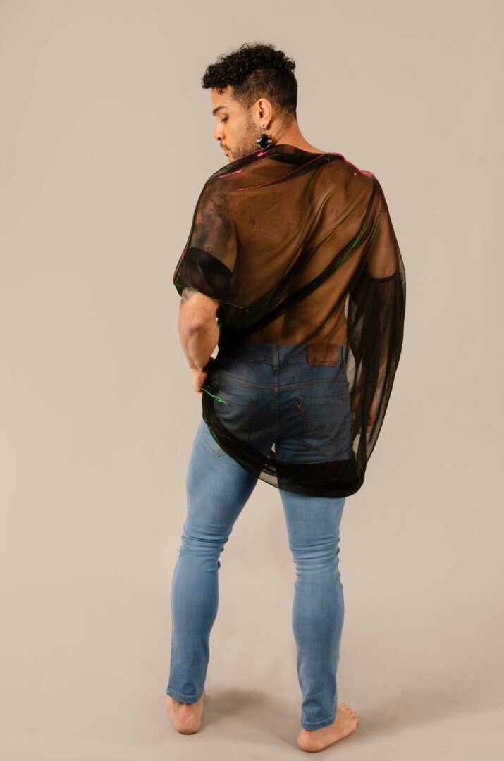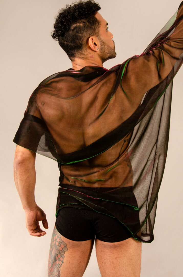 The ENYGM@ Fatal is an exclusive piece from our Afrodita collection, designed for those who seek a versatile and ultra-modern style. Made from a stretchy black tulle with iridescent green and violet hues, this top is characterized by its transformable design and great drape, offering a fresh and lightweight feel.