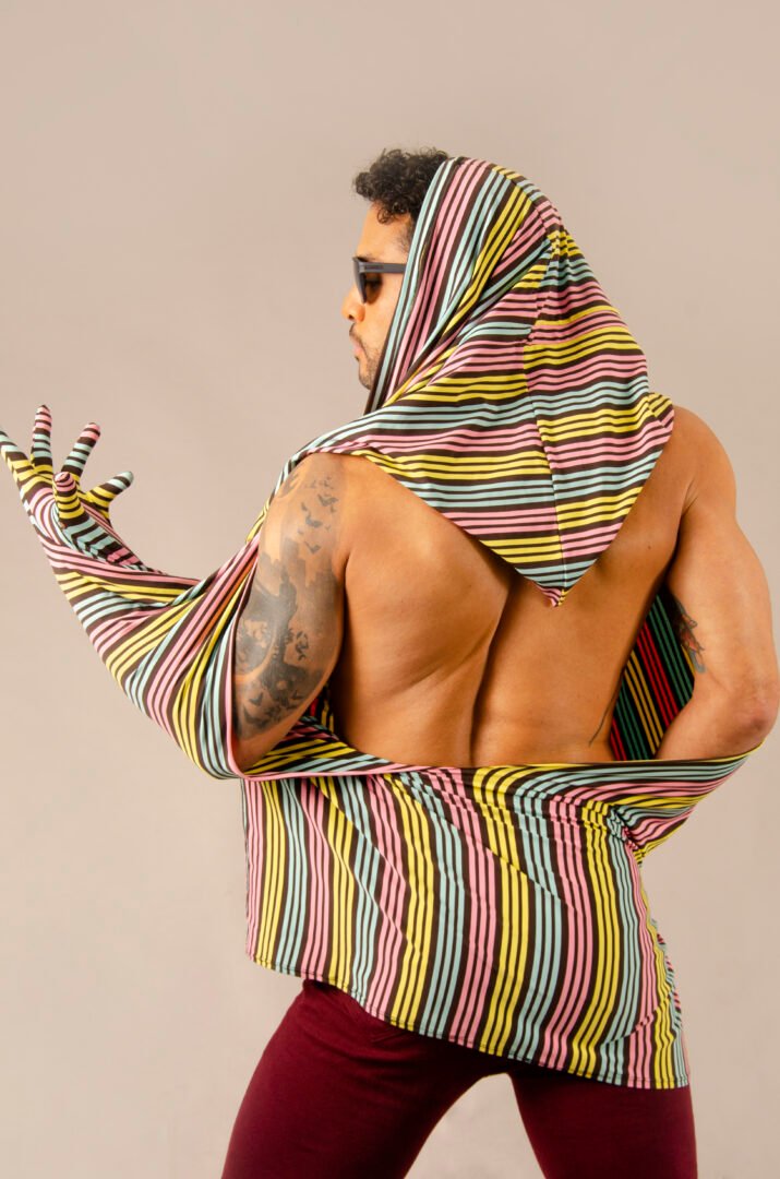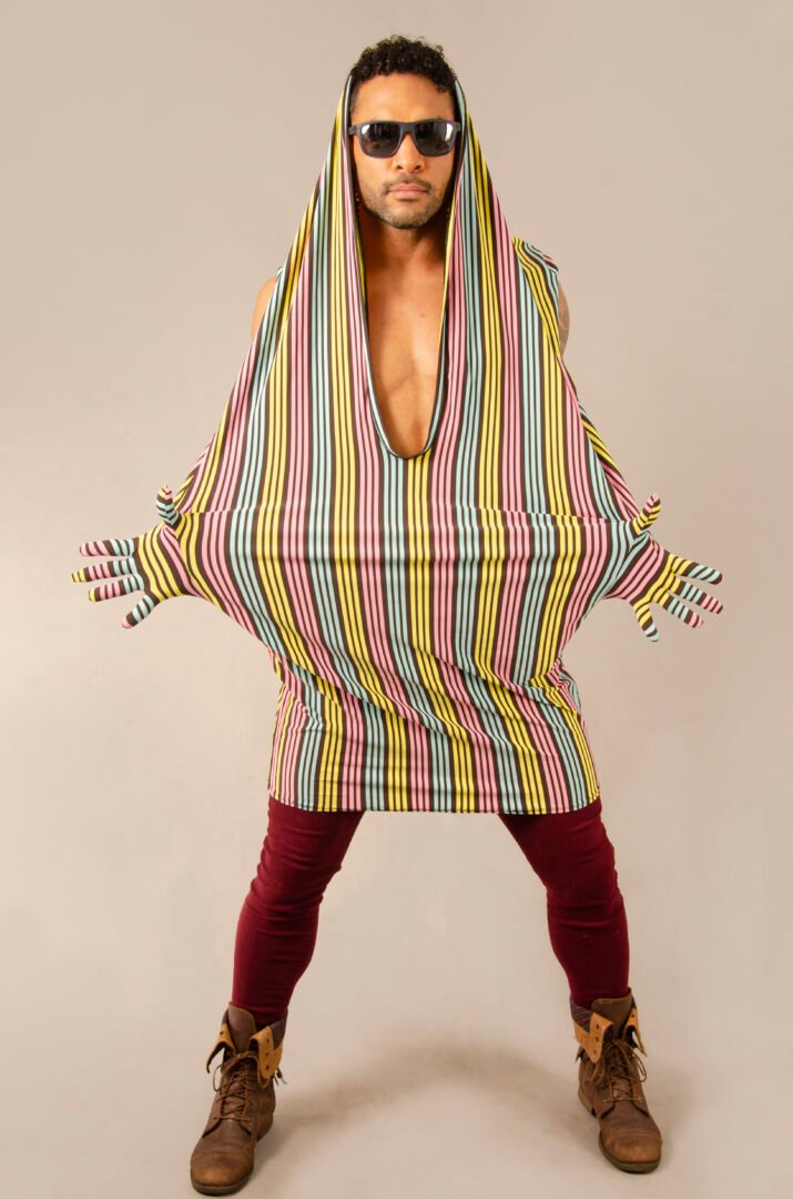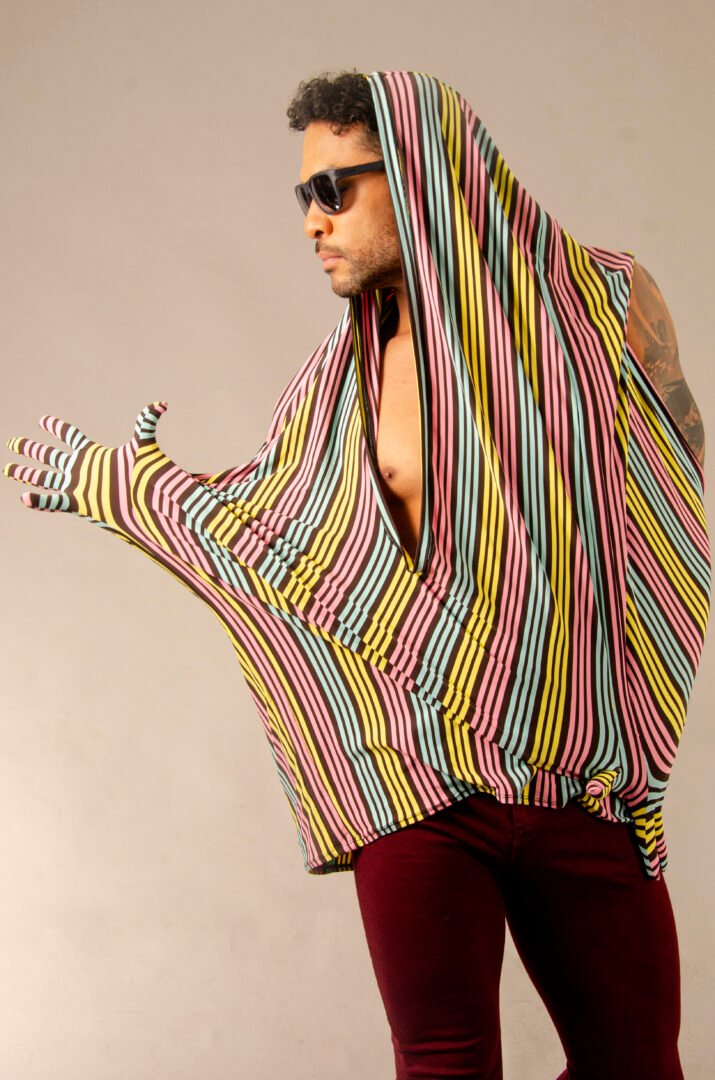The ENYGM@ Rainbow is an exclusive piece from our Afrodita collection, designed for those who seek a versatile and modern style. Made from a 100% stretchy multicolor striped fabric, this top is characterized by its transformable design, allowing for multiple ways of wearing: as a t-shirt, long shirt, or dress, depending on the wearer’s preference.