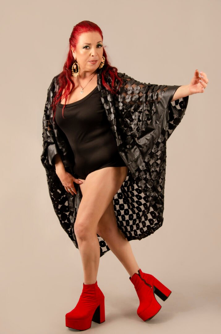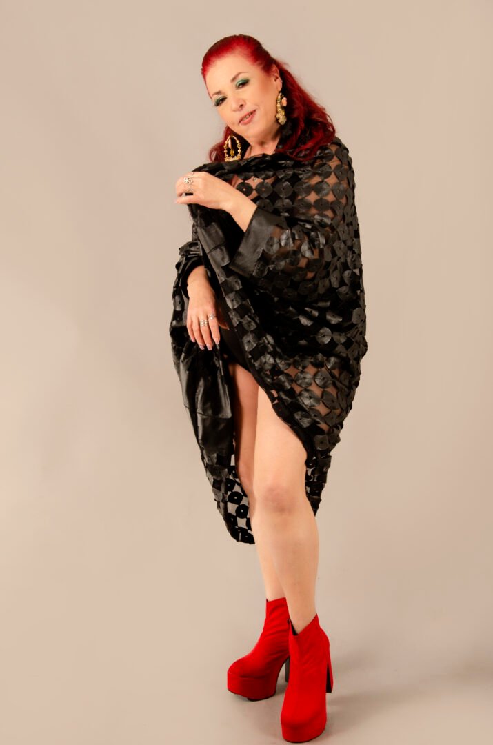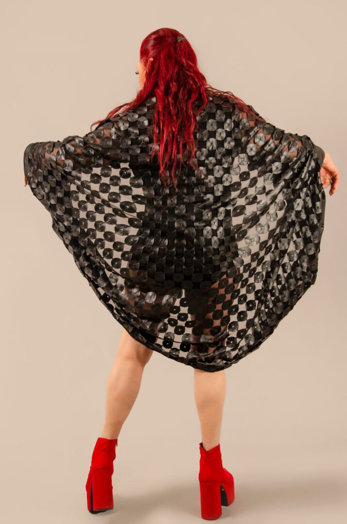 The Tunique Desierto in black is an exclusive piece from our Afrodita store. It features a unique fabric that combines black elastic synthetic leather, perforated and embroidered in circles over a black lycra tulle base. This material was specially created in Italy for Afrodita, providing a unique and exclusive edition. The garment is entirely crafted in France, adhering to the highest standards of craftsmanship. Its versatile design allows you to adjust the sleeves, wearing them long or gathered to resemble short sleeves. Additionally, you can add a belt to transform it into a shirt. It is perfect for the beach or a party, paired with a nice pair of pants, allowing everyone to choose their preferred style.