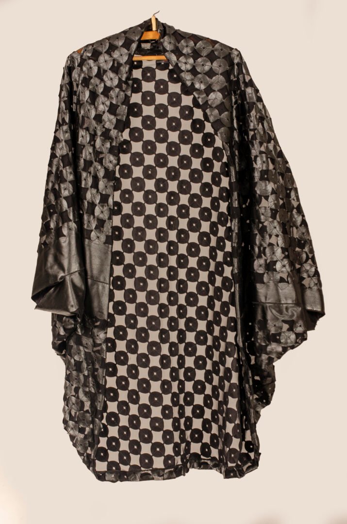 The Tunique Desierto in black is an exclusive piece from our Afrodita store. It features a unique fabric that combines black elastic synthetic leather, perforated and embroidered in circles over a black lycra tulle base. This material was specially created in Italy for Afrodita, providing a unique and exclusive edition. The garment is entirely crafted in France, adhering to the highest standards of craftsmanship. Its versatile design allows you to adjust the sleeves, wearing them long or gathered to resemble short sleeves. Additionally, you can add a belt to transform it into a shirt. It is perfect for the beach or a party, paired with a nice pair of pants, allowing everyone to choose their preferred style.