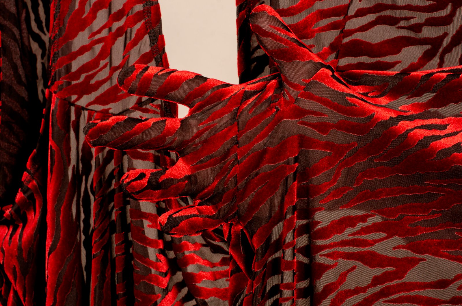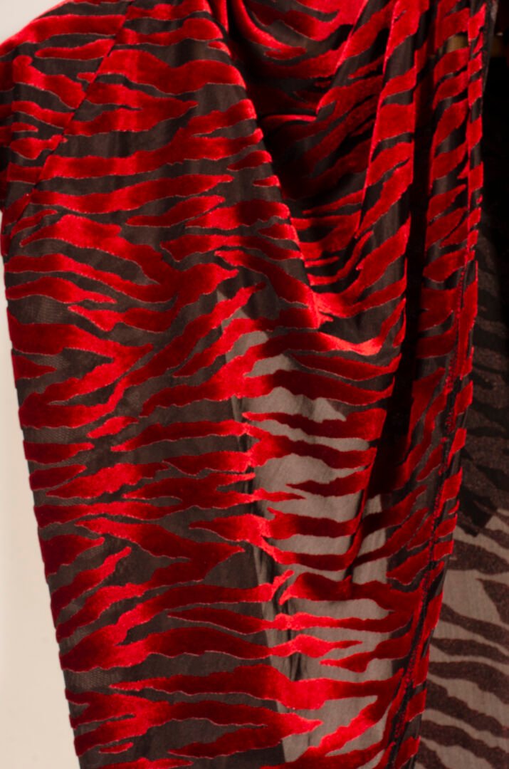 - Exclusive fabric: red tiger-stripe velvet over black lycra tulle