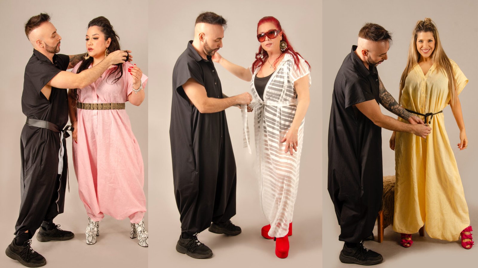 The knowledge of the body and its movements, gained through sports and acrobatics, informs every design. Jon’s creations are not meant to hang lifelessly on a hanger; they are designed to be worn by diverse bodies, allowing the fabrics to move and shape themselves around the wearer. Each garment is crafted with an understanding of how it will move comfortably in every position, making it a unique piece that evolves with the body’s movement.